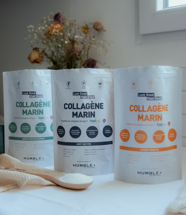 Le collagène ou peptides de collagène est une protéine naturellement produite par l'organisme et que l'on retrouve en grandes quantités (environ 80%) dans différents tissus conjonctifs tels que le derme, les muscles, les tendons, les cartilages, et même dans les os.