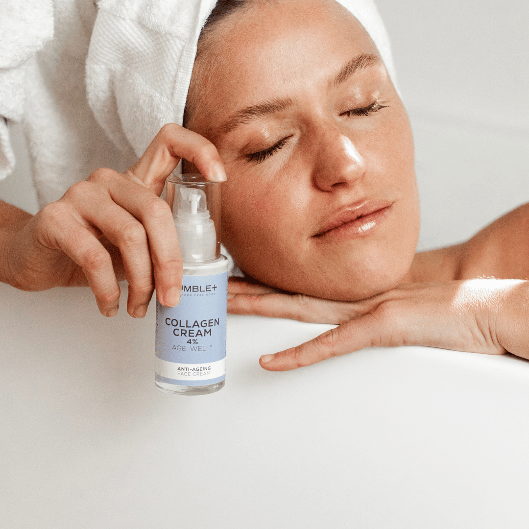 C’est pourquoi nous avons créé la Crème visage au collagène marin Humble+. Avec sa concentration inédite de 4 % de collagène marin breveté Naticol®, la plus élevée du marché, elle agit efficacement sur la fermeté et la réduction des rides. Sa performance est renforcée par une synergie In & Out, lorsque la crème est associée à la prise quotidienne de collagène marin Humble+.